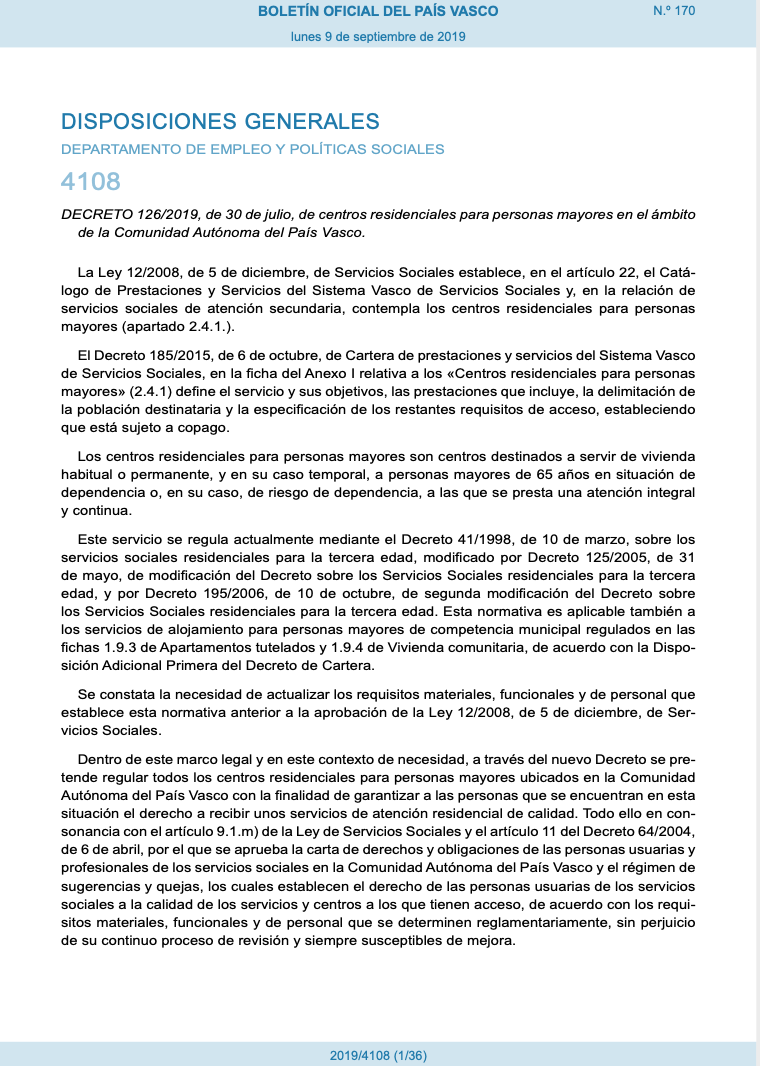 Decreto 126 2019 Centros residenciales CAPV
